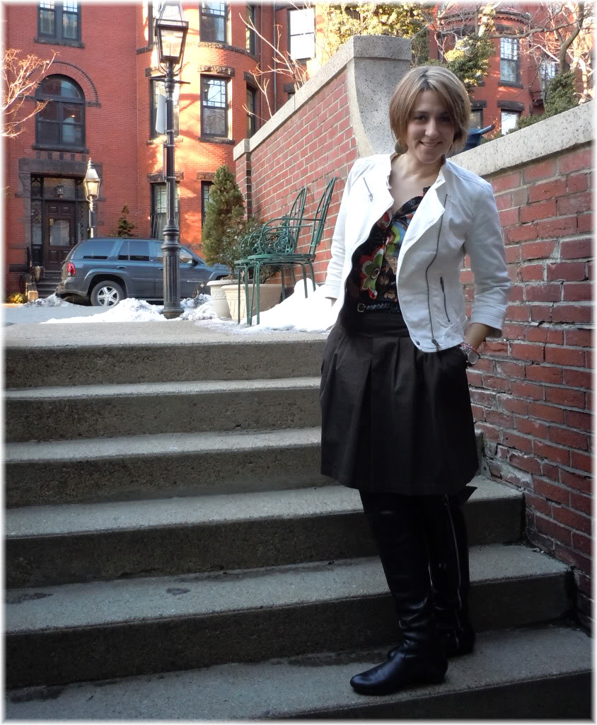 Awesome outfit. I really like the combination of jacket with the skirt!