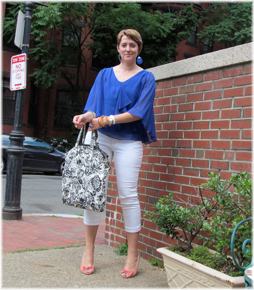 When this shirt arrived in the mail I did a little happy dance. It was the perfect shade of cobalt blue - one that I love and it equally seems to love me. (Not every color returns the love and compliments my skin tone like cobalt does, ahem, I’m looking at you green.) Plus, as many of my friends joke, I have a thing for shirts that have some serious flow power. This one is like wearing a summer cape. It has one thin layer that fits like a normal tank top and that is layered under the cape-like top. It’s fresh and fun and oh-so-summer, even if half the day was sunny and the other half was rainy.