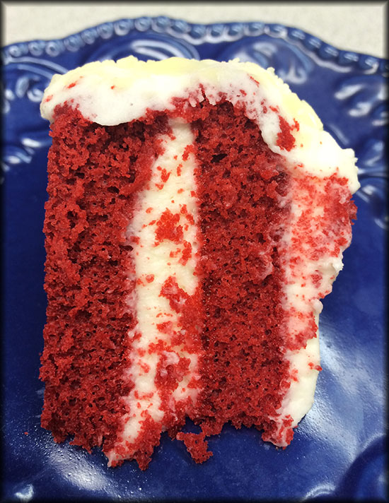 And let me tell you, the cake was amazing! Everyone loved it and there wasn’t a crumb left at the end of the night. The cream cheese frosting was delicious and the cake was so perfectly colored. I’ve made and purchased red velvet cakes before and have never seen them as perfectly red before.