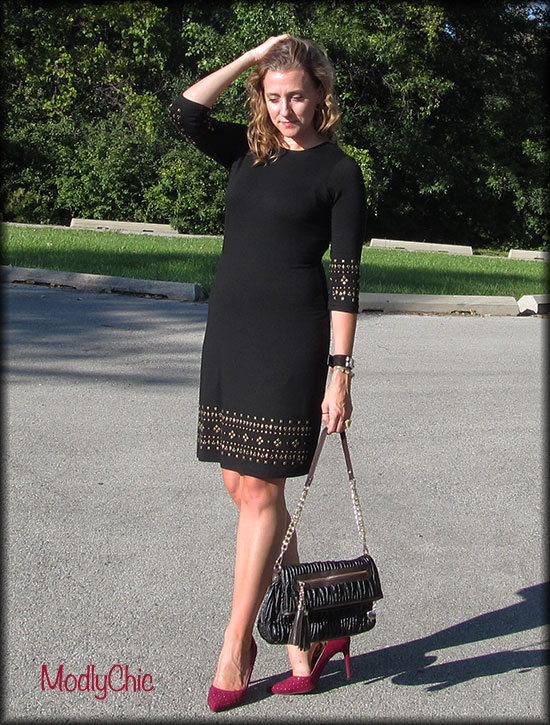 ModlyChic’s sponsor for this time around is Karen Kane. Hopefully you saw the preview earlier in the week of the stunning black studded dress.
