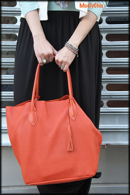 I thought I loved the blue but WOWZA on the orange. Such a fabulous pop of color for most any outfit. Loved how you gave us the back story on the company and where they are headed. Loving your outfit and pictures of the bag.