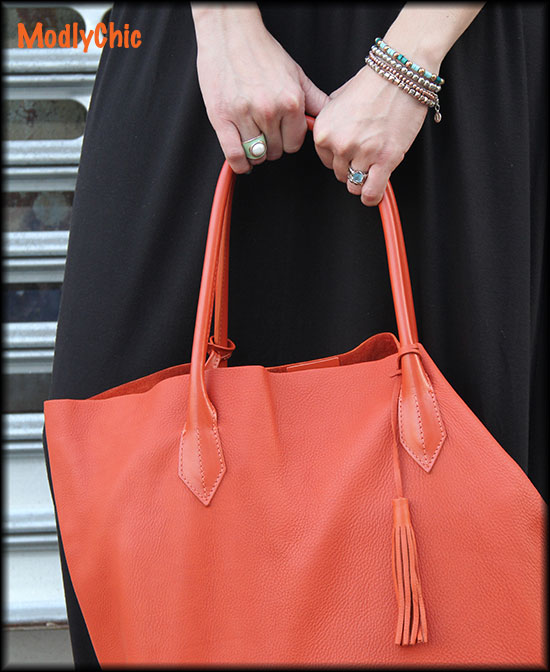 When I was out in Manhattan I had the chance to meet up with One of the owners of Adora Bags. Matteo filled me in on the launch of this new company, the unbelievable response they have gotten from purse lovers everywhere, and a little sneak-peak of what’s in store for the future. While I’m not going anything away, let’s just say the next collection of Adora Bags is equally amazing and even more stunning. I walked away from the meeting excited about where this bag business was headed and with a new orange Adora Bag in my possession.