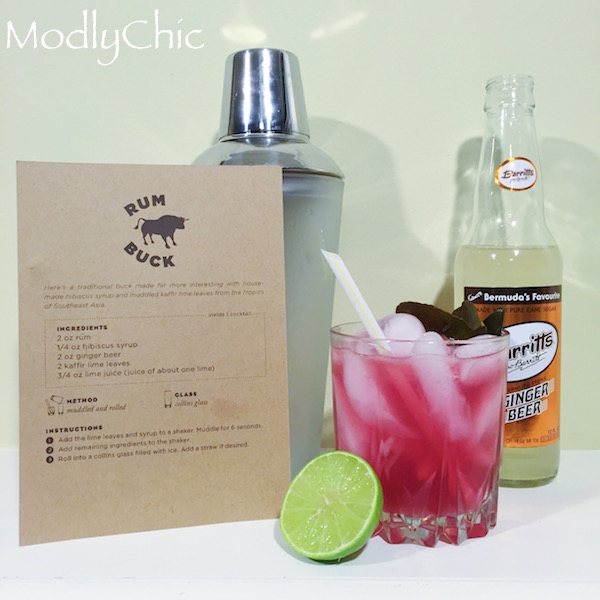 - The Rum Buck, which is made with hibiscus syrup, lime juice, ginger beer, and fresh kaffir lime leaves. This one was a girly favorite, especially given the pink color.