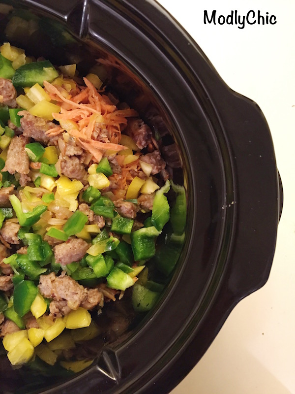 You can pretty much use any veggies you want in the mix, although I would recommend veggies that are a little crisper to begin with, otherwise after a night of cooking you are going to have some soggy veggies.