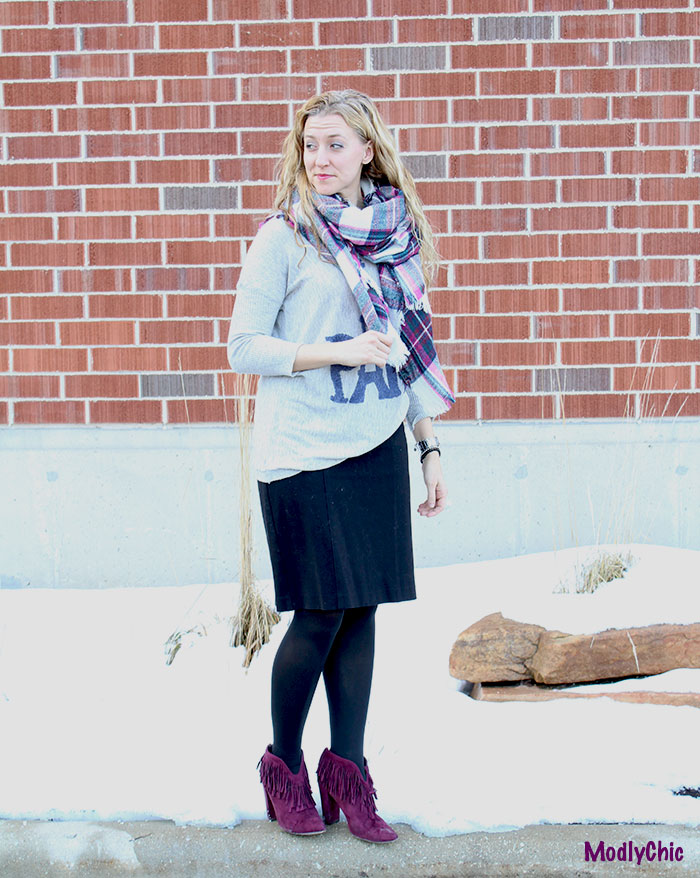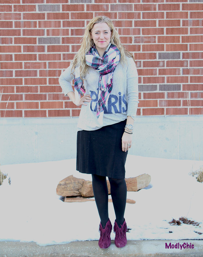Do you ever have that item in your closet that you loved maybe a year or two, or more, ago but some how it fell out of favor or got pushed to the back of the closet? That’s what happened with this Paris sweater. I’ve owned it for almost three years now and wore it a ton the first winter I got it. Last year I wore it a few times, but not too often. And then this winter it got squished into the back recesses of my closet, only to be discovered when I was actually searching for my cashmere sweater that I can’t seem to find anywhere. Since I couldn’t find the over-sized sweater I was looking for but did re-discover this one, I figured it was high time I pull it our of hiding and give it another go-round.