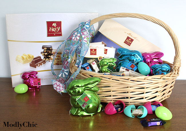 As a kid I loved the excitement of hunting through the house on Easter morning looking for my allotted 10 candy-filled eggs as well as the amazing personalized gift basket just for me. Now that I’m adulting and don’t have kids of my own, that tradition has fallen by the wayside. But this year, I decided to bring my Easter party hostess an Easter gift basket full of sweet goodness from Chocolat Frey. I packed a second basket to be taken to a local nursing home the week before Easter while I visit with those who don’t tend to get visits from family or friends over the holiday.