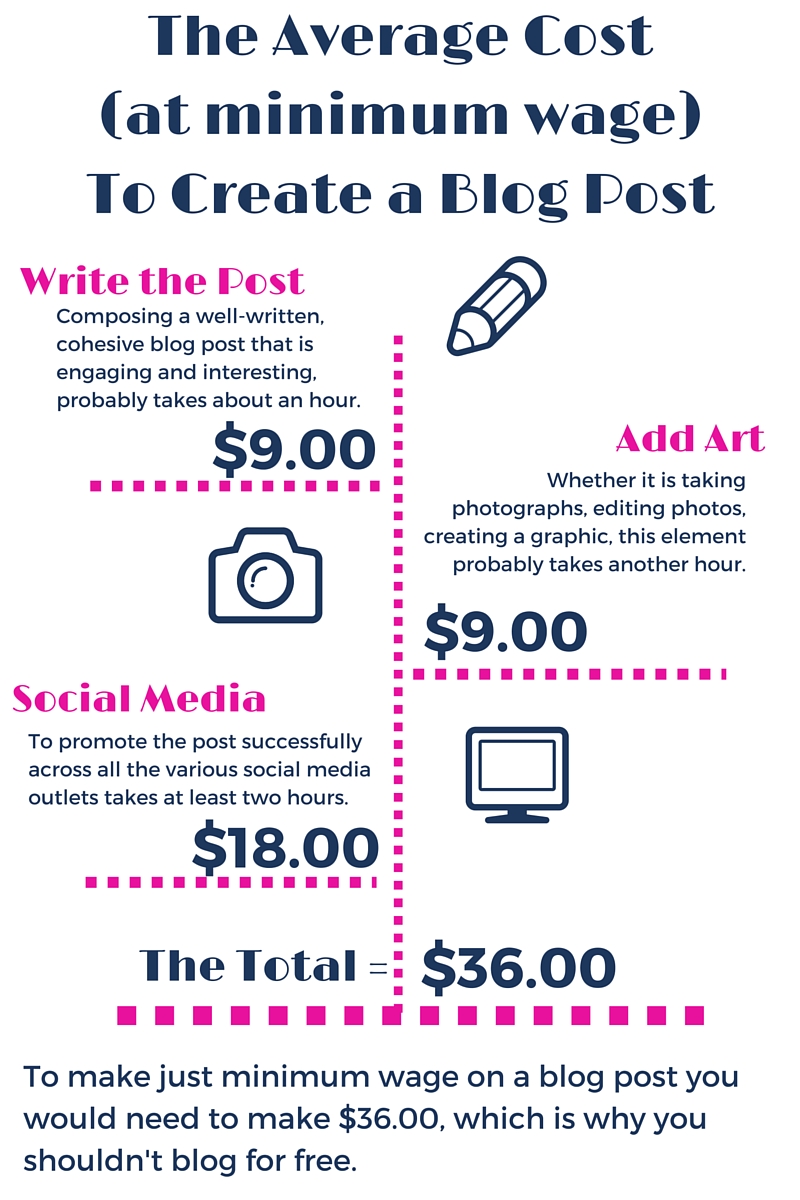 I will say one thing … I think you are being overly generous when it comes to the prices you have put on our work. I know you are simply forming a comparison but we all know our time is worth well more than min wage. Especially when the blogger has a huge following and a lot of social media followers like yourself.
