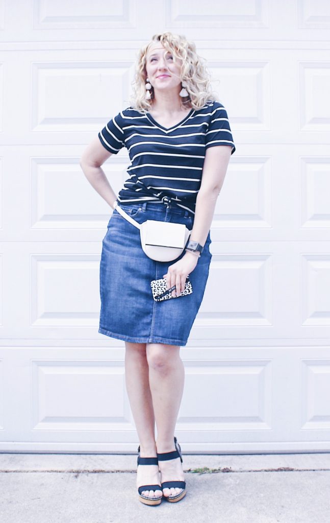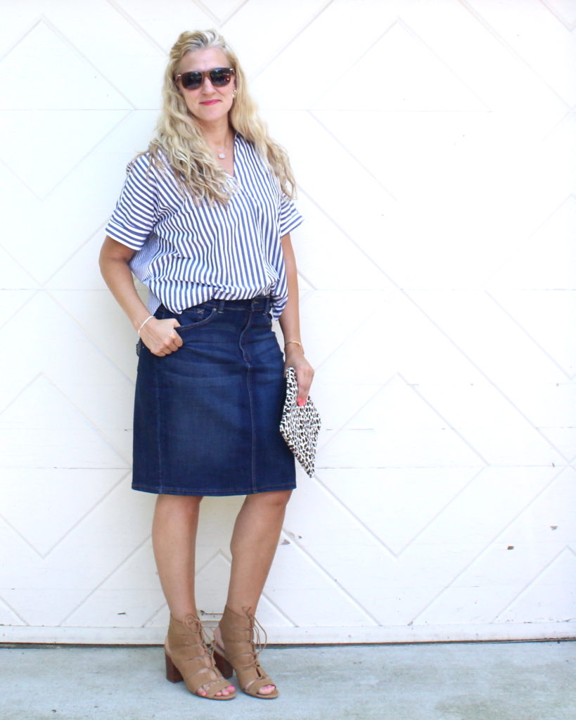 Chances are that during the summer months you’ll find me in a denim skirt at least one day per week. To me, they are the warm weather equivalent of my favorite pair of jeans - easy to wear, comfortable to be in all day, endless styling possibilities. What’s not to love?